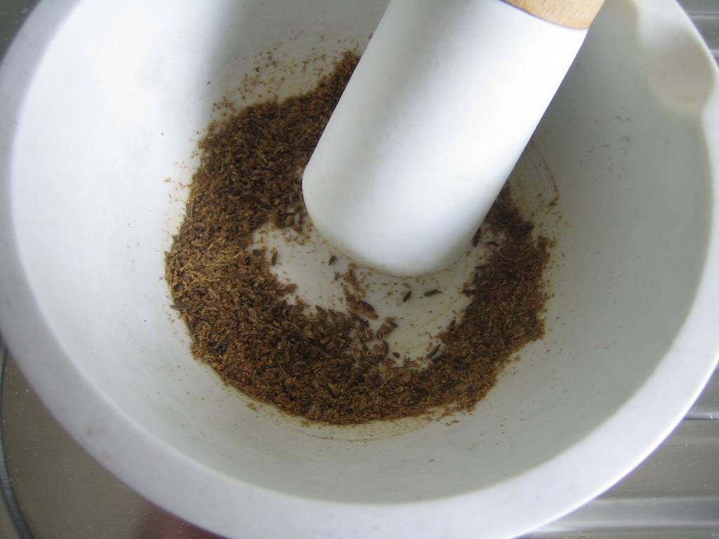 - Brotgewürz (selbstgemacht: Kümmel, Anis, Koriander im Mörser zerstossen)
